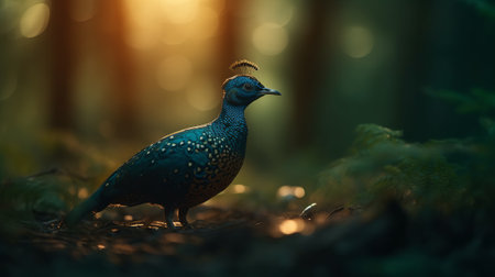 Bird in evening forest light. Nature's tranquility captured