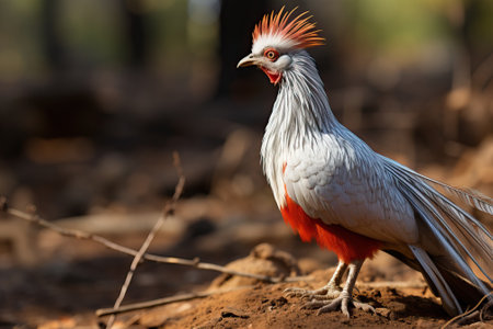 Red-billed Seriema Bird Looks Alert in Tropical Setting