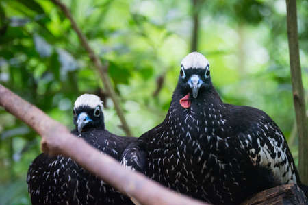 Spixs Guan (Penelope jacquacu), a captive specimen with a damaged beak.