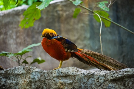 Male Golden pheasant also called the Chinese pheasant or chrysolophus pictus is known as a game bird.