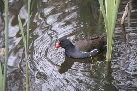A Moorhen looking for food in Canada water.