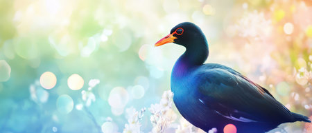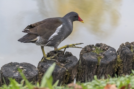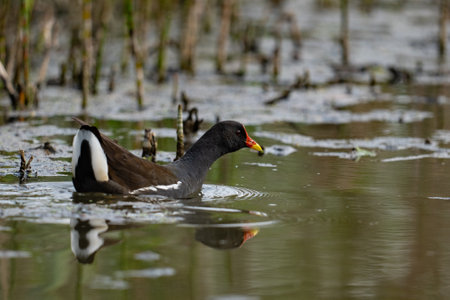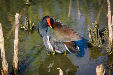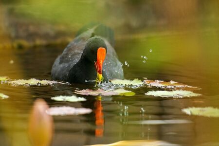 Common moorhen water bird in nature