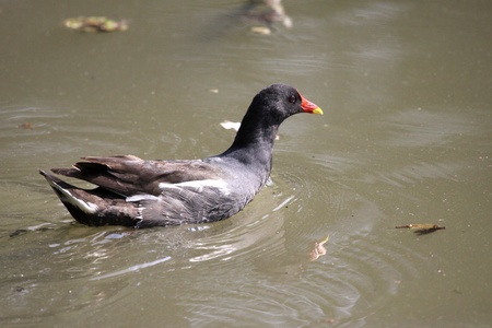 Moorhen swimming into a lake
