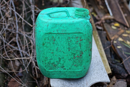 A sturdy utility bottle crafted for holding liquids stands upright on a plain surface. The smooth design and neutral color suggest practicality and cleanliness in a minimalistic setting.