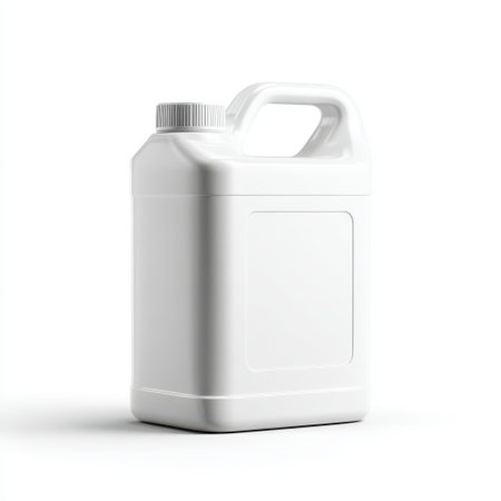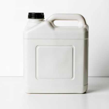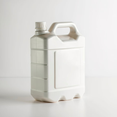 Clean and Simple White Plastic Container with Handle for Liquids, Ideal for Storage and Transport of Various Substances in a Minimalistic Setting