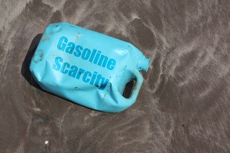 A can of petrol lies empty on the beach sands after gas stations go on strike in India
