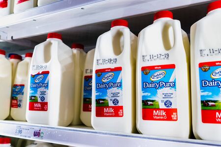 Nov 12, 2019 Sunnyvale / CA / USA - DairyPure milk on shelves in a supermarket; the DairyPure brand is owned by the largest dairy company in the United States, Dean Foods