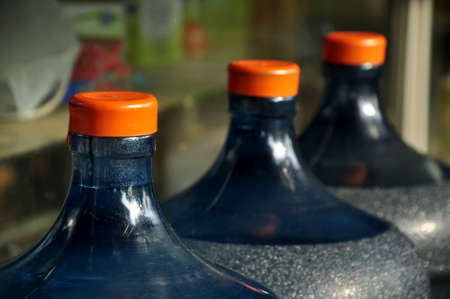 A row of water cooler jugs.