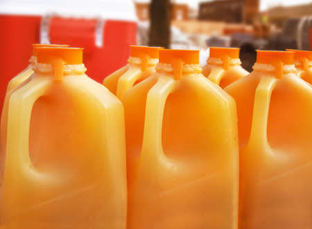 Photo of large plastic bottles with colored liquid.