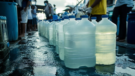 TARAKAN - INDONESIA, 4th February row blue transparent waters gallon