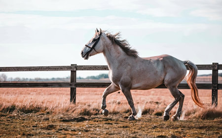 Elegant Horse in Mid-Gallop with Powerful Movement