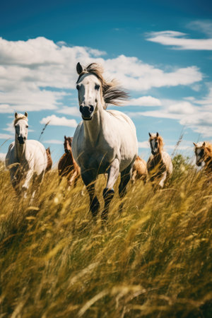 This beautiful photograph captures a group of horses running wild in a natural setting. With their manes and tails flying in the wind, these majestic creatures exude power and freedom. The colors of the landscape and sky provide a stunning backdrop to the action-packed scene. Perfect for any horse lover or nature enthusiast, Ai Gennerated