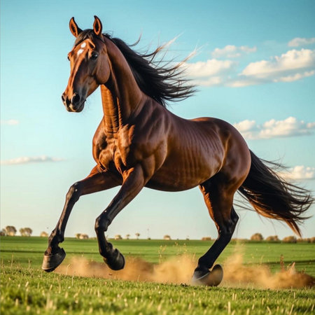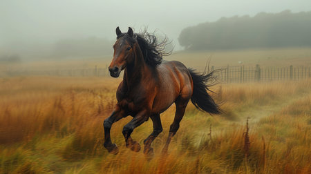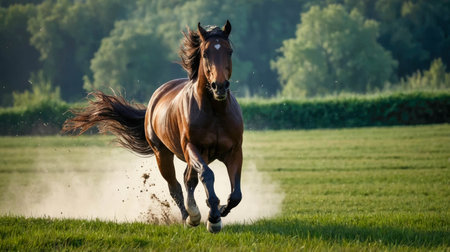 Horse galloping across an open field, powerful muscles in motion generative ai