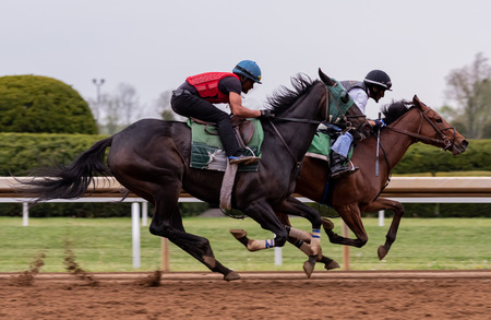 Two Horses Race for Morning Workouts with jockey silhouettes