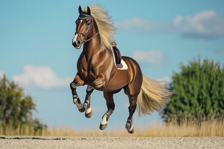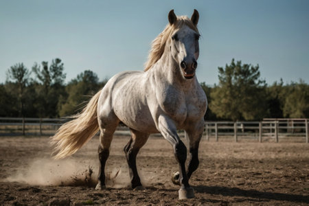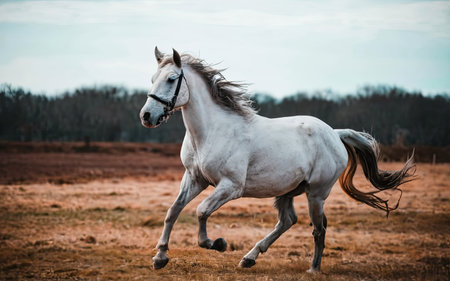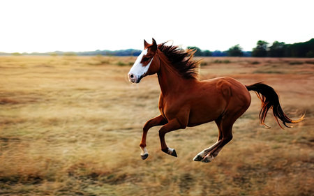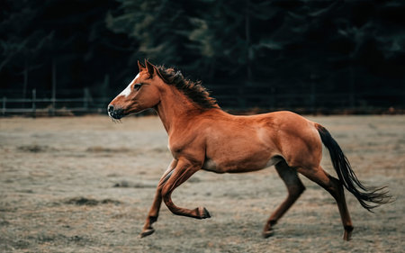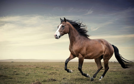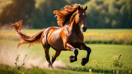 Horse galloping across an open field, powerful muscles in motion generative ai