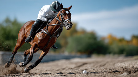 A powerful horse and rider showcase impressive speed in an outdoor equestrian event, capturing the essence of athleticism and nature in motion.