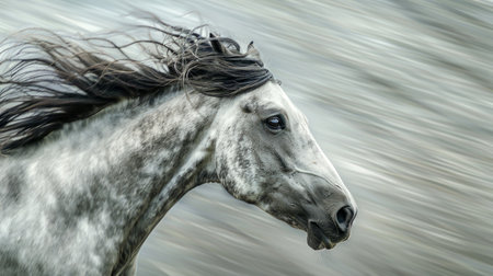 Close-Up of a Horse's Head and Mane in Motion. Concept of Equestrian Beauty, Animal Strength, Nature, Gallop, Fast Speed, Beauty in Motion, Freeze Frame.
