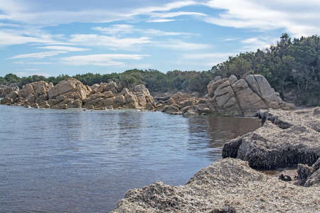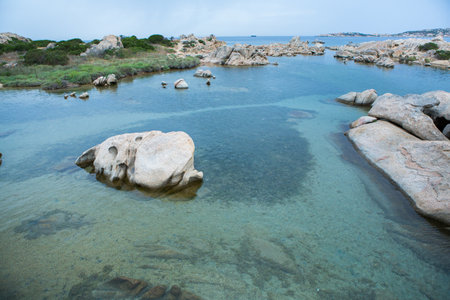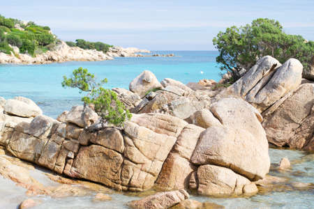 Beautiful Sardinia island landscape with granite rocks and azure coloured bays in Porto Pollo