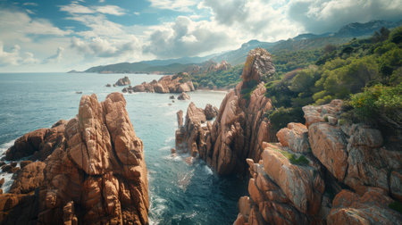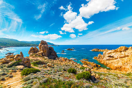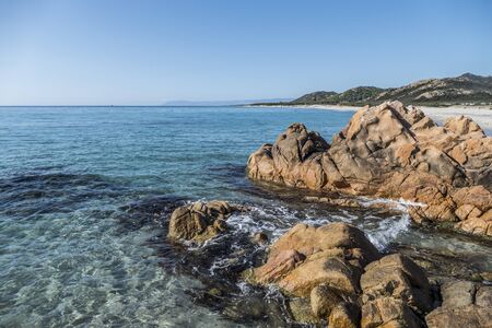 Rocky coast of the island of Sardinia in the Mediterranean Sea