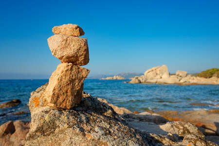 View of cairns at Palombaggia beach, Porto Vecchio, Corsica