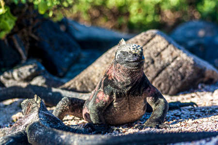 Marine iguanas outdoors, Galapagos Island, Isla Isabela. With selective focus