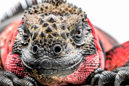 Portrait of male marine iguana, endemic of Galapagos islands, Ecuador