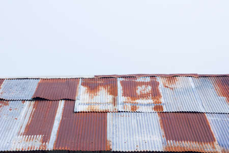 close up a rusty corrugated iron metal sheet texture of old roof on building isolated on white sky
