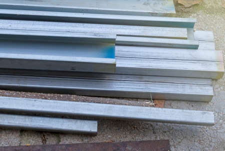 The structure of metal structures stacked in a pile. Metal. In the open. Production.
