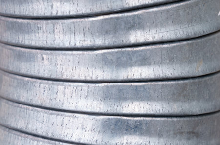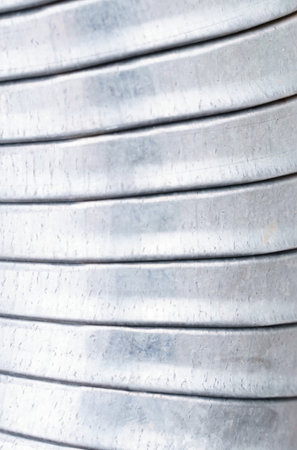 Detailed close up of a tightly wound silver coil of wire showing its texture and metallic properties.