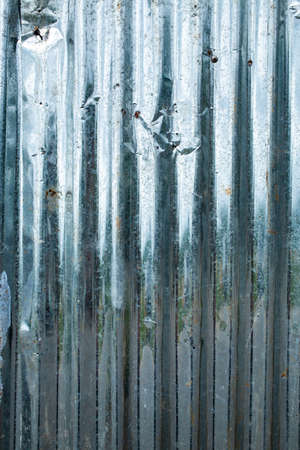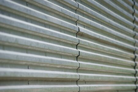 Tin fence with a beautiful textured pattern. Graffiti Place. Modern fence with vertical stripes.