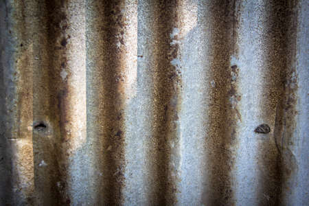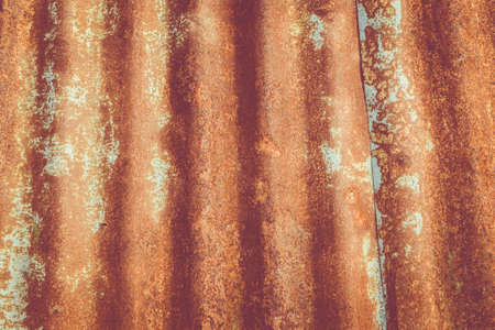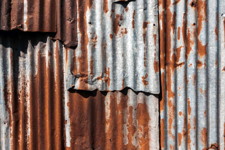Old and rusty zinc sheet wall. Vintage style metal sheet roof texture. Pattern of old metal sheet. Rusting metal or siding. Corrosion of galvanized. Background and textures in retro concept.