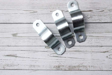 Metal working tools. Metal style. Metal preparations and fixing elements on the scratched metal background.