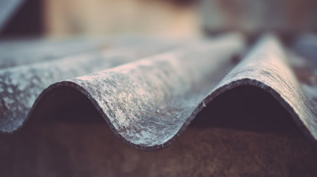 A close-up image showcasing a wavy metal surface with textured patterns. The natural light highlights the details of the gray, weathered material, creating an artistic look.