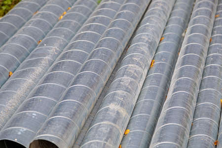 Metal pipes for ventilation on a construction site. Ventilation pipes.