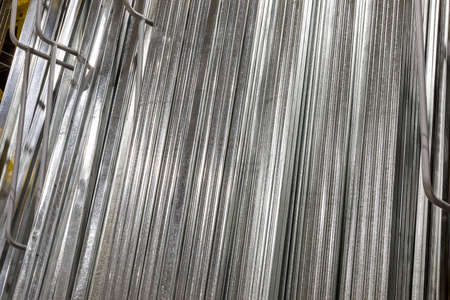 Metal profile angle in packs at the warehouse of metal products, Russia