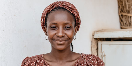 beautiful african woman wearing headscarf smiling at the camera