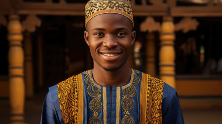 portrait of a young african man in a colorful traditional outfit