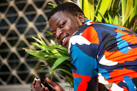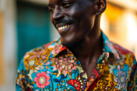 Portrait of a handsome young African man wearing a colorful shirt.