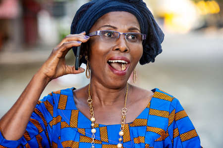 Radiant wisdom: A heartwarming portrait of a smiling African senior woman, capturing the beauty of joy and experience.