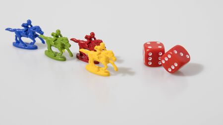 Colorful dices on the map. The concept of board games and a lucky chance to win