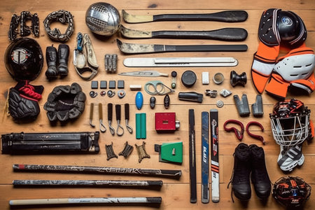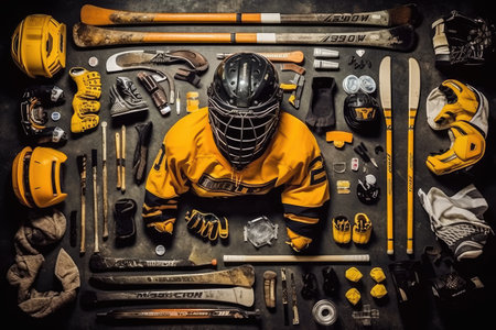 knolling of ice hockey tools and equipment photoraphy Generated AI