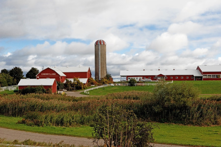 Rural Ontario Farm with Barn Silo storage agriculture animals Canada farming