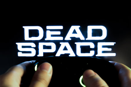 Gamer plays Dead Space with a gamepad. Stock editorial photo with the game logo. Ukraine, Kiev. 04.14. 2024