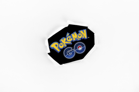 Kuala Lumpur, MALAYSIA - JULY 15TH, 2016: Pokemon Go on torn paper. Pokemon Go is a free-to-play augmented reality mobile game developed by Niantic for iOS and Android devices