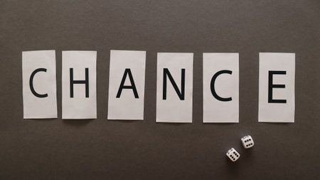 The inscription chance on a gray background with game cubes. View from above