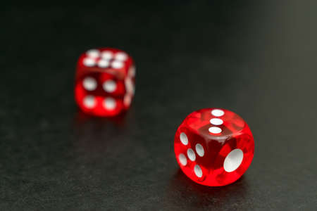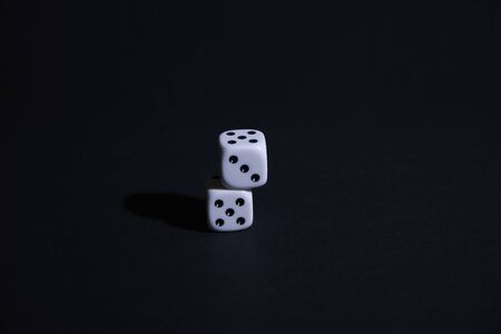 Two dice on black background, Static, horizontal, Two dice on black background, Static, horizontal, one on top of the other
