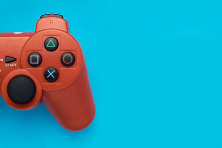 A gamepad on a blue background, copy space.