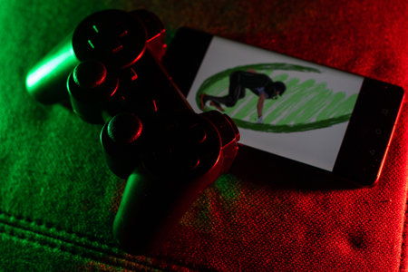 Smartphone and two game joysticks. Minimalism. Cybersport concept. Streaming.