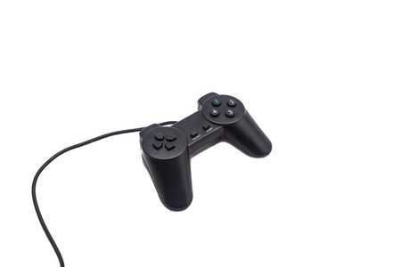 Saint-Petersburg-18 August, 2020: Joystick for game console on black background. Game console with a joystick. Home video game console.