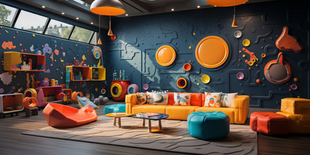 Colorful playroom with modern design, comfortable sofa, and educational toys generated by artificial intelligence